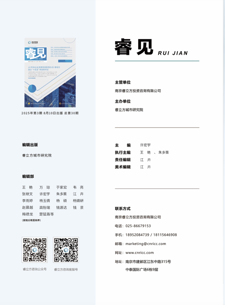 《睿見》2025年第3期 總30期《睿見》匯集睿立方咨詢專家智慧、致力于打造國內(nèi)更專業(yè)的新型城鎮(zhèn)化資訊載體。這里有更全面的政策速遞,更深度的政策解讀,更具前瞻性的專家論斷,更接地氣的系統(tǒng)化專業(yè)化解決方案。 欲閱讀或訂閱期刊,關(guān)注微信公眾號(hào):睿立方咨詢;電話聯(lián)系:江女士 18952084089 / 025-86679153。 |